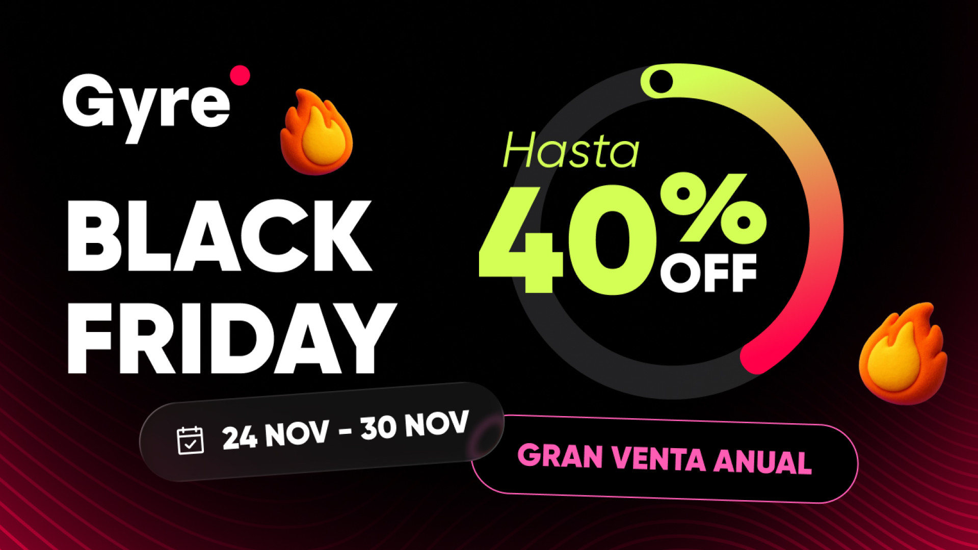 Del 24 al 30 de noviembre, Gyre realiza su evento de Black Friday con hasta un 40% de descuento en planes de 3, 6 y 12 meses. Es el precio más bajo del año — y el momento ideal para asegurar un ciclo largo y estable de streaming que acelere el crecimiento de tu canal.