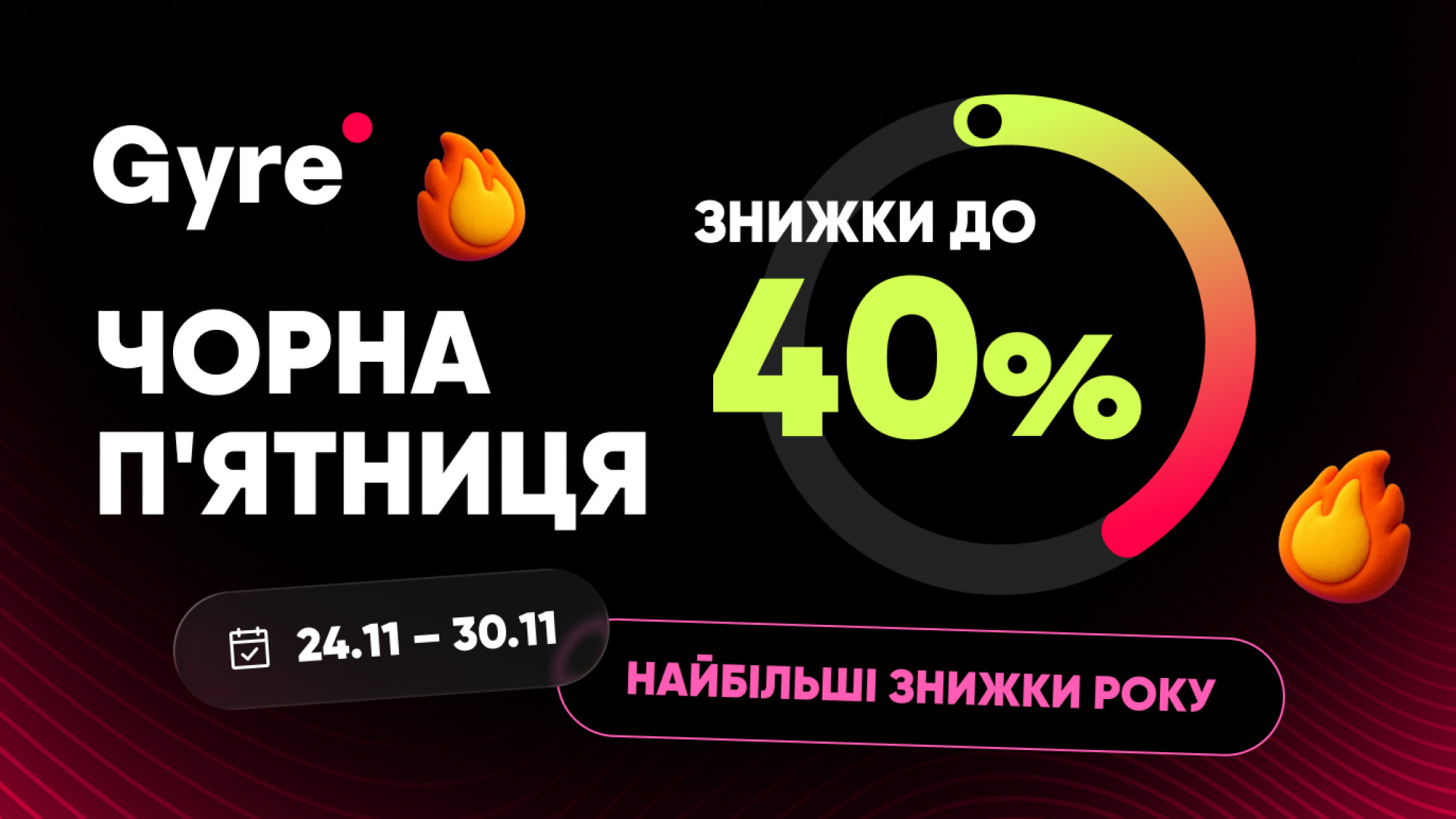 З 24 до 30 листопада Gyre проводить Чорну п’ятницю: знижки до 40% на підписки на 3, 6 і 12 місяців. Це найнижча ціна року — і найзручніший момент запланувати собі стабільний тривалий цикл стрімінгу для прискореного росту каналу.